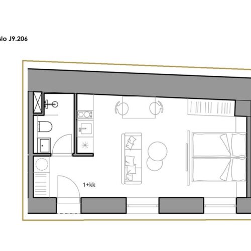 K dispozici jednotka J9.206 o dispozici 1+kk a ploše 27,9 m². Tento moderní apartmán je ideální pro ty, kteří hledají něco výjimečného – prostor, který spojuje styl, funkčnost a maximální pohodlí.