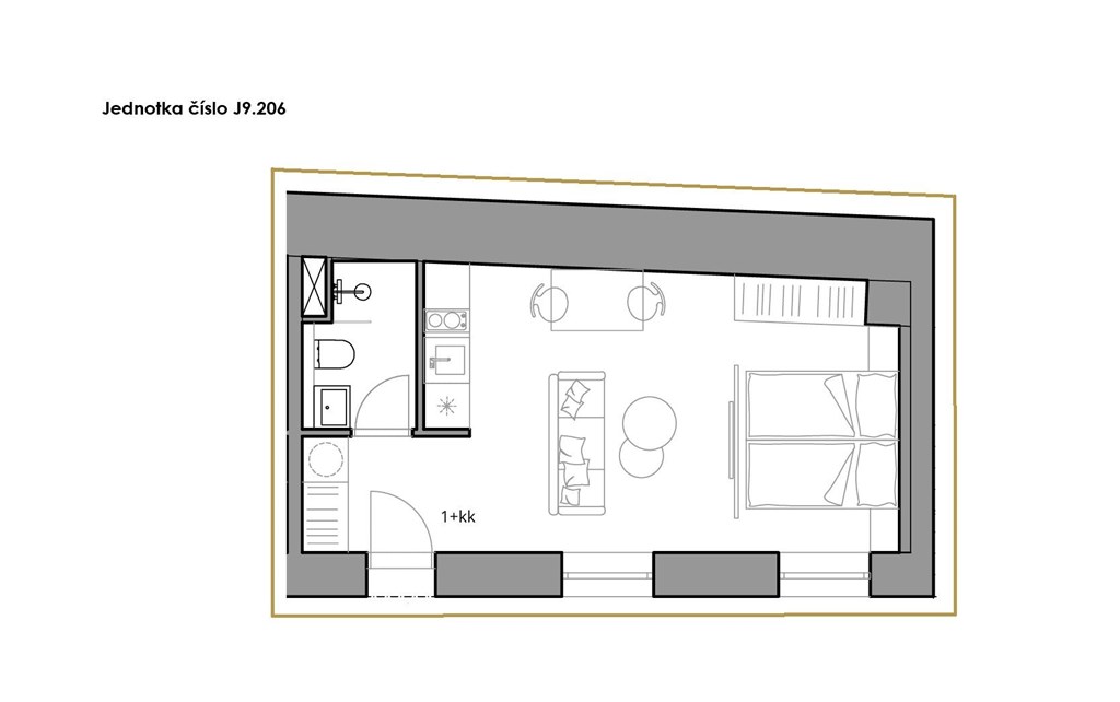 K dispozici jednotka J9.206 o dispozici 1+kk a ploše 27,9 m². Tento moderní apartmán je ideální pro ty, kteří hledají něco výjimečného – prostor, který spojuje styl, funkčnost a maximální pohodlí.