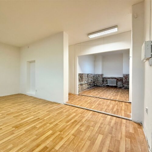 Prostor je vhodný k jakékoliv obchodní činnosti, například na prodejnu, showroom, kavárnu či služby typu manikúra apod. Součástí prostoru je toaleta, prodejní prostor a prostor pro sklad/zázemí. Výhodou jsou velké výkladce, které jsou viditelné z uliční fronty. Skládá se z jednoho otevřeného prostoru, který je možné rozdělit na prodejní/obchodní prostor a zadní skladovací část. Dále prostor nabízí oddělenou kancelář a druhý vchod. V prostoru je k dispozici menší prostor pro zázemí a tři toalety. Dále je zde možnost pronájmu vyhrazeného místa přímo před prodejnou vhodného například pro zahrádku.