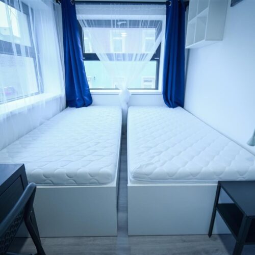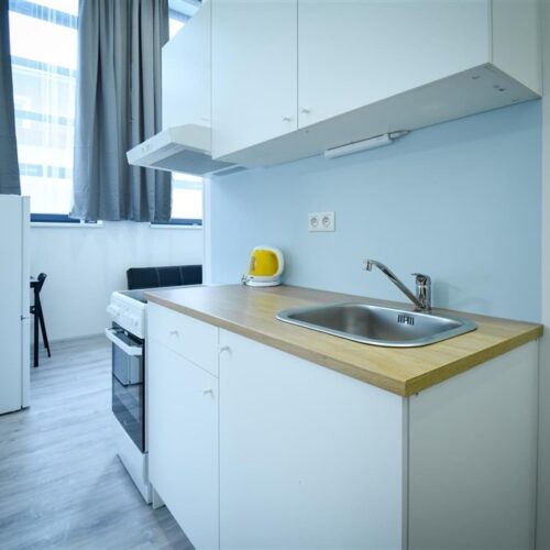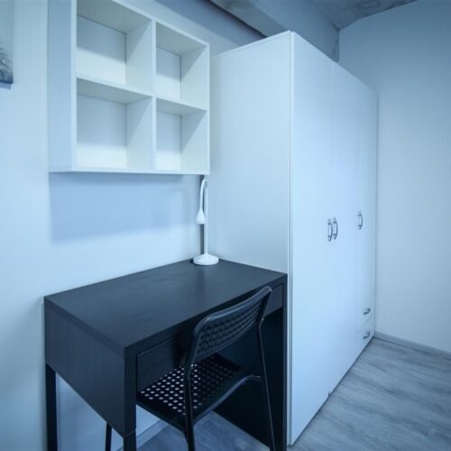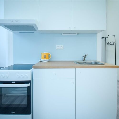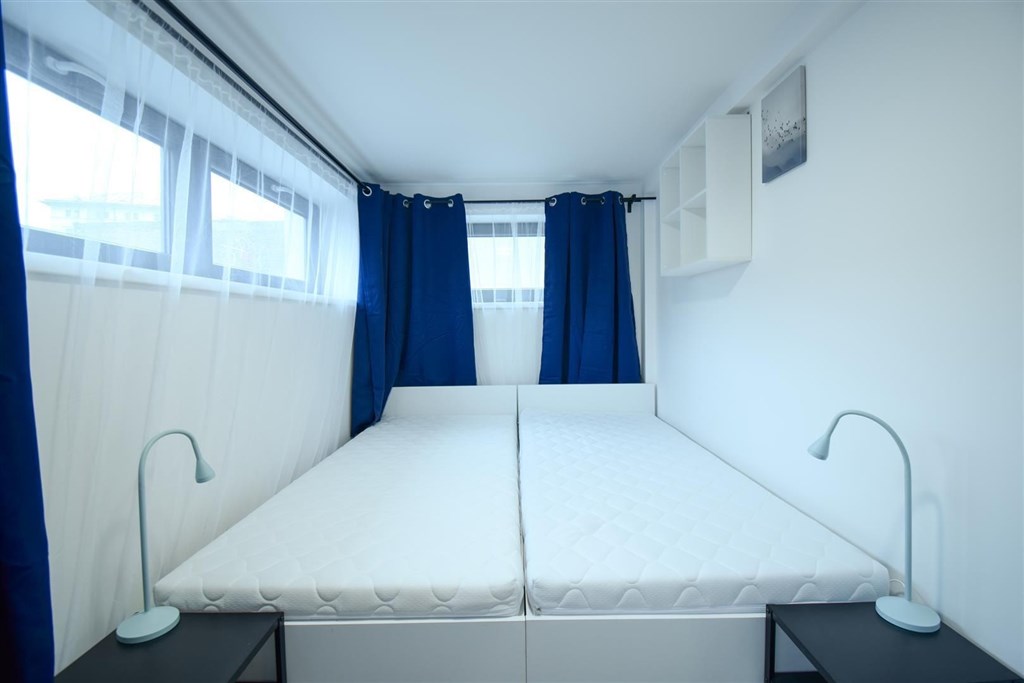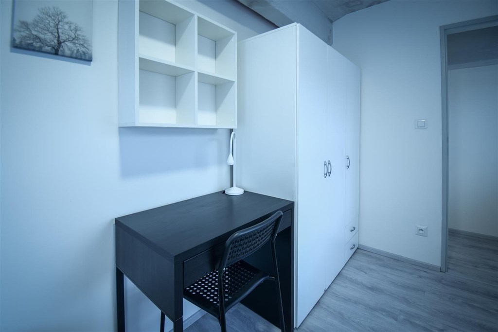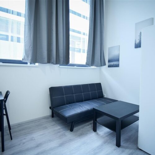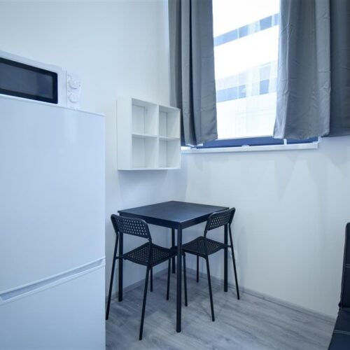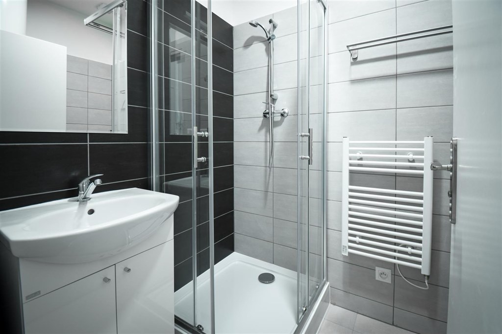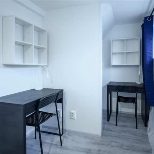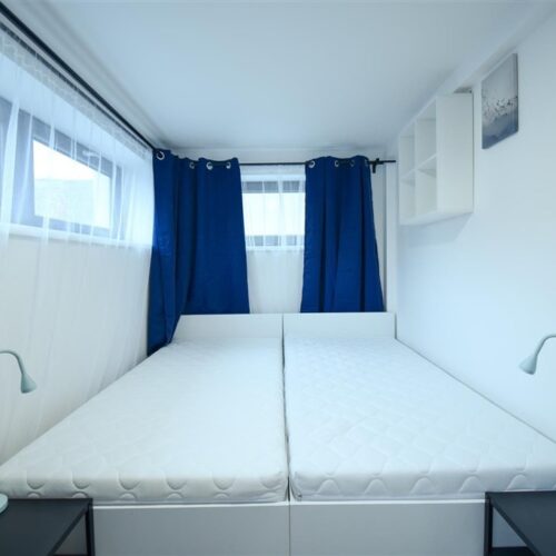 Jednotka o dispozici 3+kk je nabízena plně vybavená. V první části jednotky se nachází moderní kuchyně vybavená včetně lednice, sklokeramické desky, mikrovlnné trouby, rychlovarné konvice, digestoře a dřezu. Ke kuchyni dále náleží prostorný kuchyňský stůl s židlemi. V druhé části jednotky je k dispozici menší obývací pokoj s pohodlným gaučem a designově řešeným konferenčním stolkem. Jednotka Vám dále nabízí dva neprůchozí pokoje, které jsou každé vybaveny dvěma postelemi s nočními stolky, pracovními stoly a skříněmi pro Vaše oblečení a osobní věci. Koupelna je také plně vybavená, a to sprchovým koutem, záchodem a umyvadlem se zrcadlem. K dispozici je příprava pro připojení vlastní pračky.