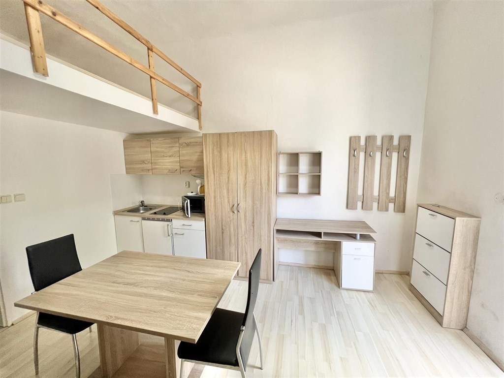 Jedná se o podnájem kompletně vybavené jednotky o dispozici 1+kk ve zrekonstruovaném domě. Součástí je plně zařízený kuchyňský kout včetně lednice, mikrovlnné trouby, varné konvice, sklokeramické desky, digestoře a dřezu. Jednotka je vybavena jídelním a pracovním stolem se židlemi, mezonetovým spaním s nočními stolky a prostornou skříní. Koupelna nabízí sprchový kout, záchod a umyvadlo se zrcadlem. K dispozici je příprava pro připojení vlastní pračky.