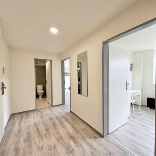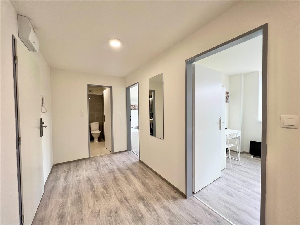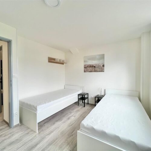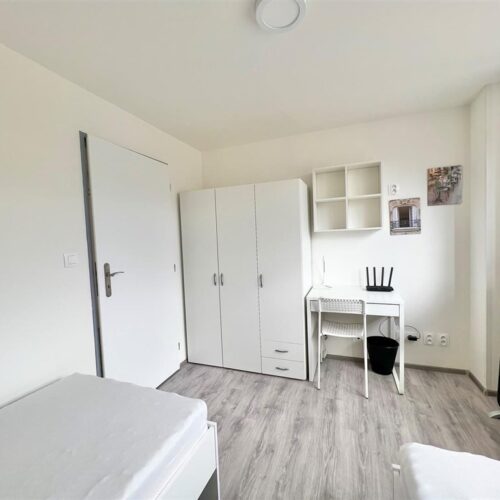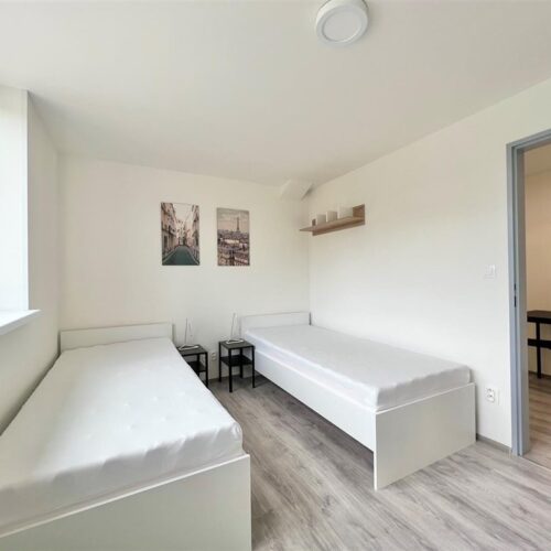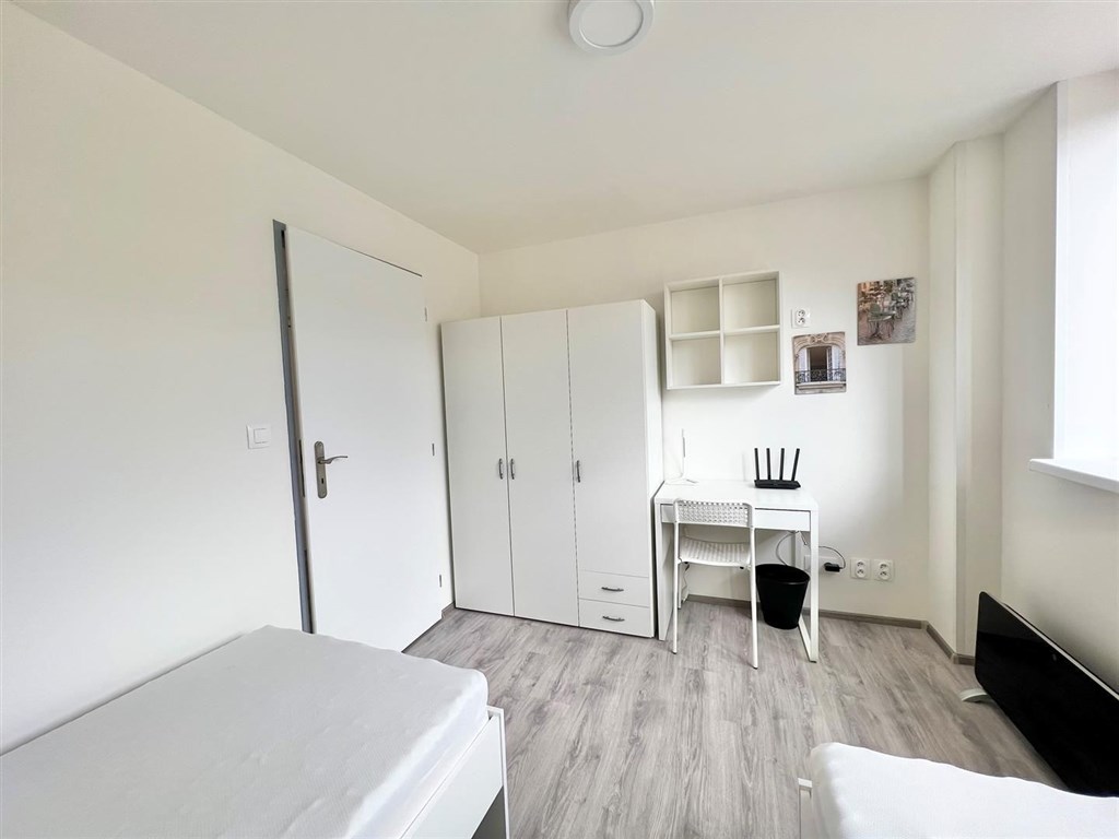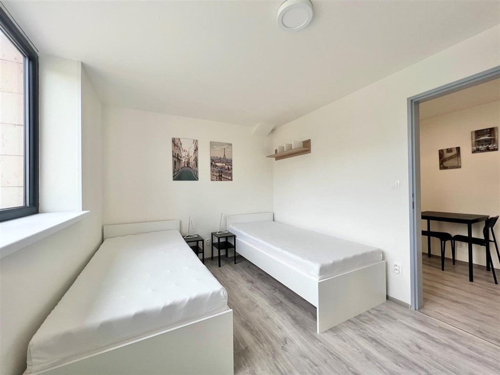 Jste skupina studentů a hledáte moderní bydlení v centru Brna? Nabízíme kompletně opravenou bytovou jednotku o dispozici 2+1, která nabízí dva vzájemně neprůchozí a příjemně prosvětlené pokoje. Každý pokoj má k dispozici dvě oddělené pohodlné postele s nočními stolky a lampičkami. Prostornou skříň na Vaše oblečení a osobní věci a pracovní stůl s úložným prostorem. Jednotka dále nabízí moderní kuchyni vybavenou kuchyňským koutem se sklokeramickou deskou, mikrovlnnou troubou, rychlovarnou konvicí, digestoří a dřezem. V kuchyni dále naleznete prostorný jídelní stůl se židlemi. Jednotka je tedy vhodná až pro 4 osoby. Koupelna je také plně vybavená, a to sprchovým koutem, záchodem a umyvadlem se zrcadlem. K dispozici je příprava pro připojení vlastní pračky.