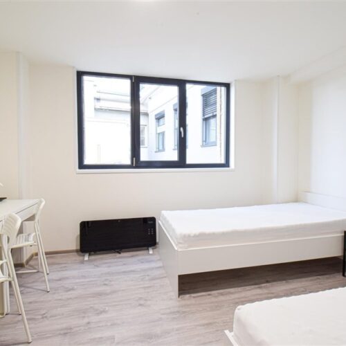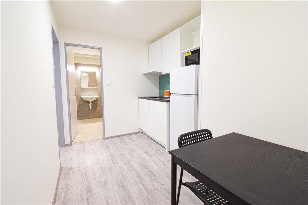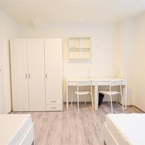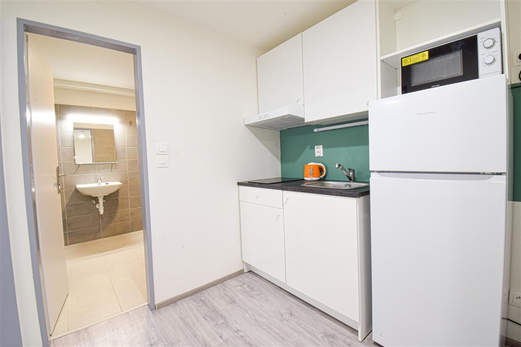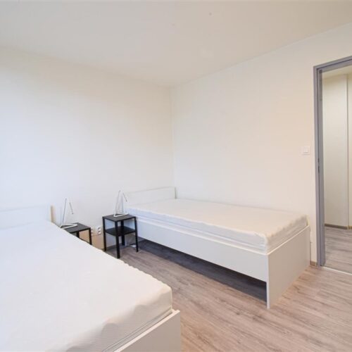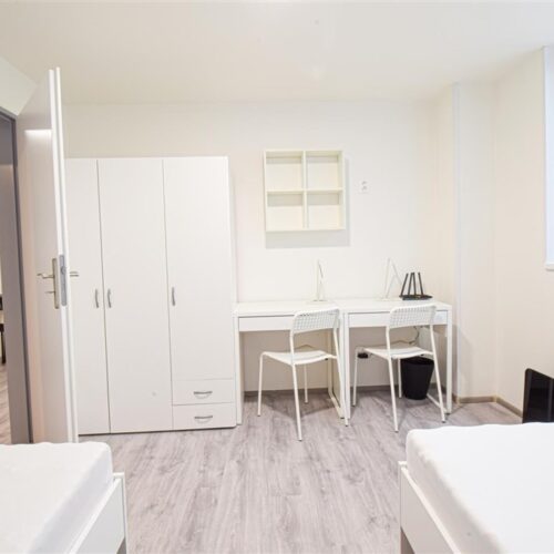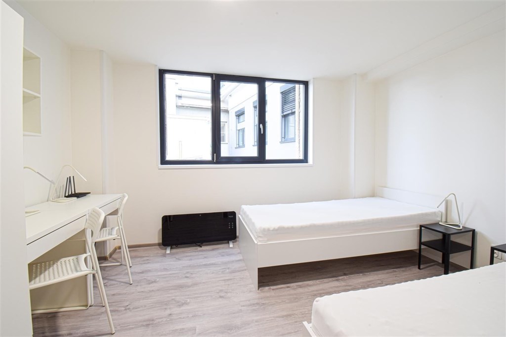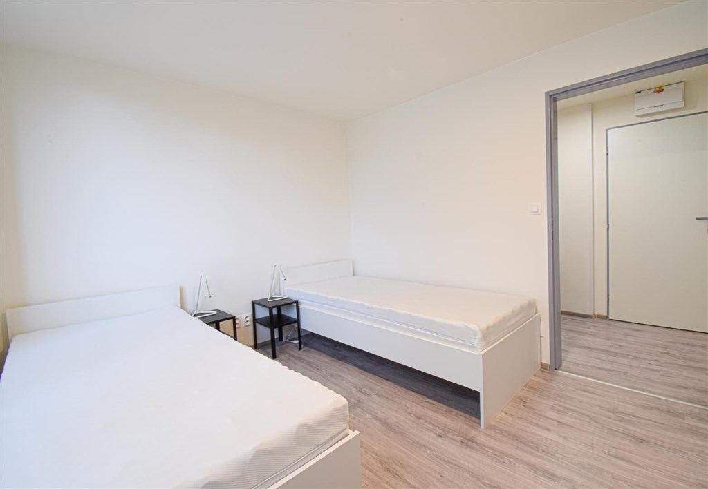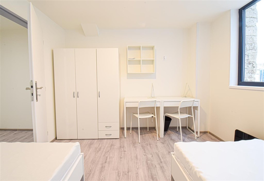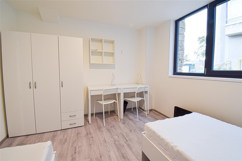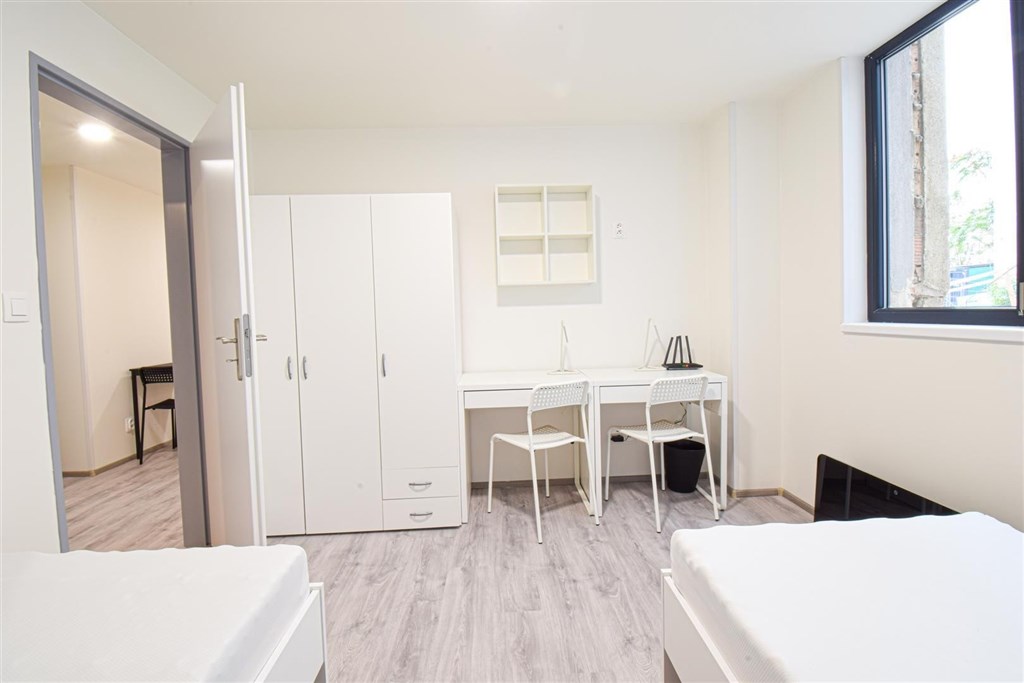 Jedná se o podnájem kompletně zařízené jednotky o dispozici 2+1. Výhodou této jednotky jsou dva vzájemně neprůchozí pokoje, takže je jednotka vhodná například pro skupinu studentů. V každém pokoji se nachází dvě pohodlné postele s nočními stolky a lampičkami, pracovní stůl s úložným prostorem a prostorná skříň na Vaše oblečení. Koupelna je také plně vybavená, a to sprchovým koutem, záchodem a umyvadlem se zrcadlem a umyvadlovou skříňkou. K dispozici je příprava pro připojení vlastní pračky.