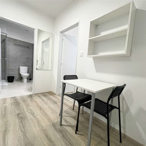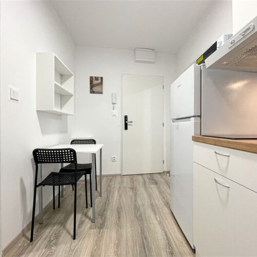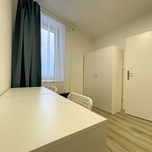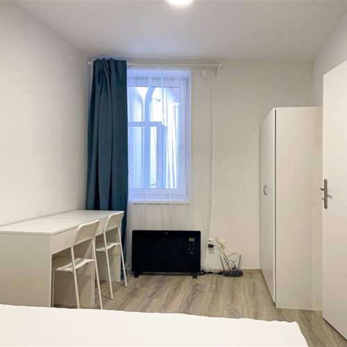 Jedná se o podnájem jednotky o dispozici 2+1, která je nabízena kompletně vybavená. Součástí je plně zařízený kuchyňský kout včetně lednice, mikrovlnné trouby, varné konvice, sklokeramické desky, digestoře a dřezu. Jednotka má dva vzájemně neprůchozí pokoje a je v každém pokoji vybavena dvěma pohodlnými postelemi s nočními stolky, dvěma pracovními stoly se židlemi a prostornou skříní. Koupelna nabízí sprchový kout, záchod a umyvadlo se zrcadlem a připojení pračky.