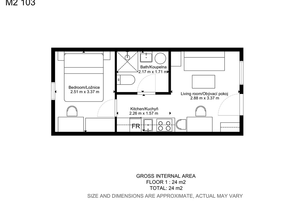 Nabízíme k podnájmu jednotku M2.101 o celkové výměře 27 m2, která je k dispozici od 1.12.2025. K dispozici je ve stejném komplexu několik jednotek ve velikosti 1+kk, 2+kk a 2+1 pro 2 4 osoby.