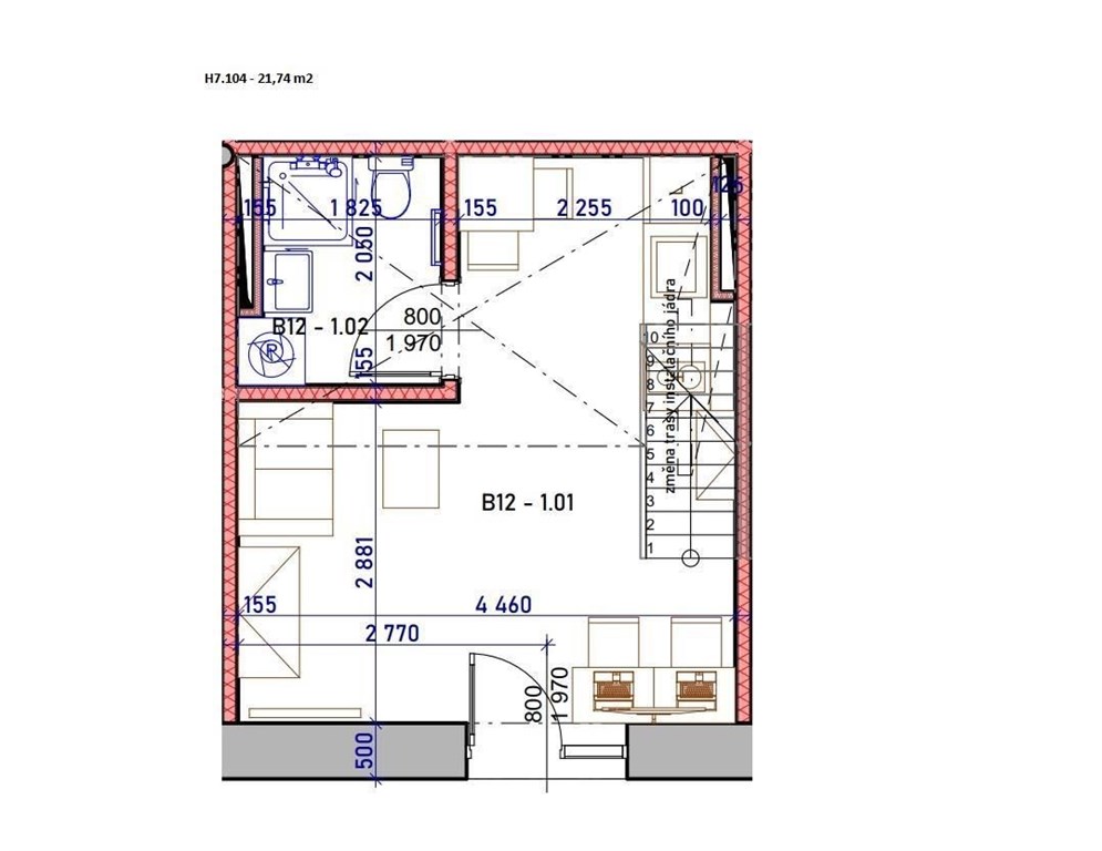 Nabízíme k podnájmu jednotku H7.112 o celkové výměře 21,74 m2, která je k dispoziciihned. K dispozici je ve stejném komplexu několik jednotek ve velikosti 1+kk, 2+kk a 2+1 pro 2 4 osoby.
