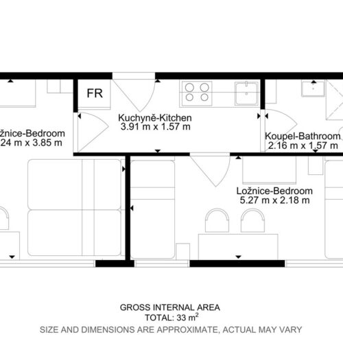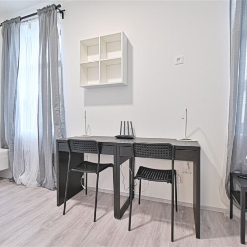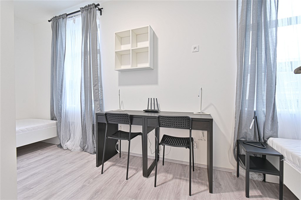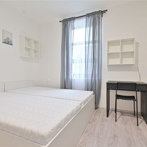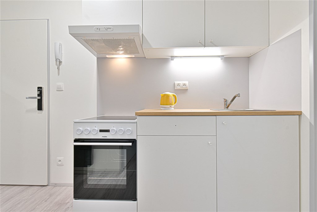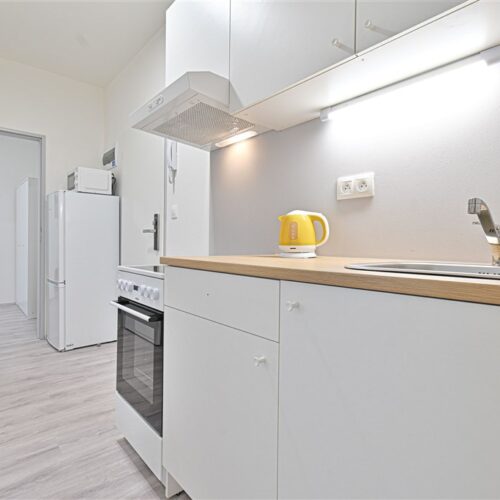 Bytová jednotka 2+1 je plně vybavena pro každodenní bydlení. Při vstupu do bytové jednotky se nachází moderní kuchyně včetně lednice, sporáku s troubou, mikrovlnné trouby, rychlovarné konvice, digestoře a dřezu. Zároveň v kuchyni naleznete jídelní stůl se židlemi. Bytové jednotce imponují dva neprůchozí pokoje, kdy v každém pokoji naleznete dvě prostorné postele s pohodlnou matrací, noční stolek s lampičkou, pracovní stůl s úložným prostorem a prostornou skříň. Koupelna nabízí sprchový kout, záchod a umyvadlo se zrcadlem. K dispozici je příprava pro připojení vlastní pračky.