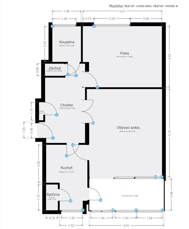 Nabízíme Vám k podnájmu kompletně vybavenou jednotku o celkové výměře 78 m2 a o dispozici 2+1 se vzájemně neprůchozími pokoji