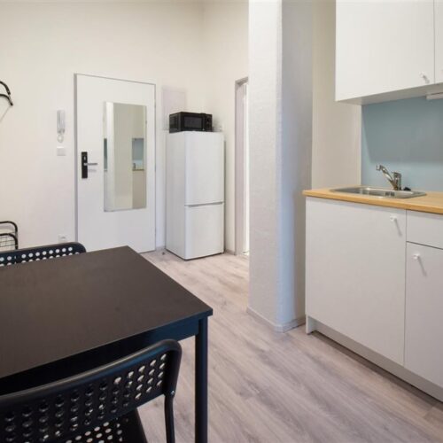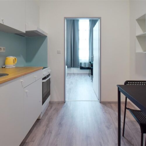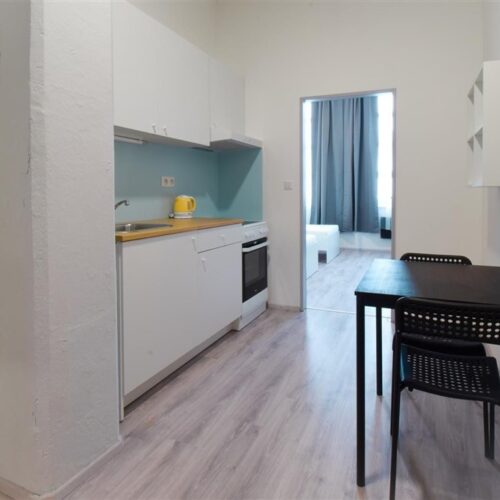 Jedná se o podnájem kompletně vybavené jednotky o dispozici 1+1 v nově zrekonstruovaném domě. Součástí je plně zařízený kuchyňský kout včetně lednice, sporáku s troubou, digestoře, dřezu, mikrovlnné trouby a varné konvice. Jednotka je plně vybavena nábytkem, koupelna nabízí sprchový kout, záchod a umyvadlo se zrcadlem. K dispozici je příprava pro připojení vlastní pračky.
