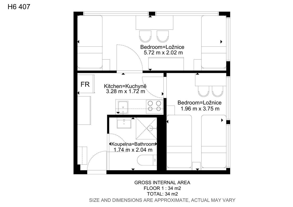 Nabízíme k pronájmu jednotku H6.407 o celkové výměře 33,98 m2, která je k dispozici ihned. K dispozici je ve stejném komplexu několik jednotek ve velikosti 1+kk, 2+kk a 2+1 pro 2 4 osoby od dřívějšího data.