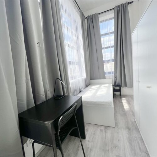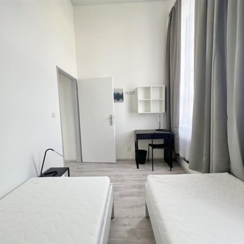 Jedná se o pronájem kompletně vybavené jednotky o dispozici 2+1 v nově zrekonstruovaném domě. Jednotka nabízí prostornou kuchyni s moderním kuchyňským koutem, lednicí, mikrovlnnou troubou, varnou konvicí a sporákem s troubou. V jednotce se dále nachází dvě oddělené ložnice, každá vybavena dvěma postelemi s nočními stolky, dvěma pracovními stoly se židlemi a prostornou skříní. Koupelna nabízí sprchový kout, záchod a umyvadlo se zrcadlem. K dispozici je příprava pro připojení vlastní pračky. V bytové jednotce je k dispozici internetové připojení.