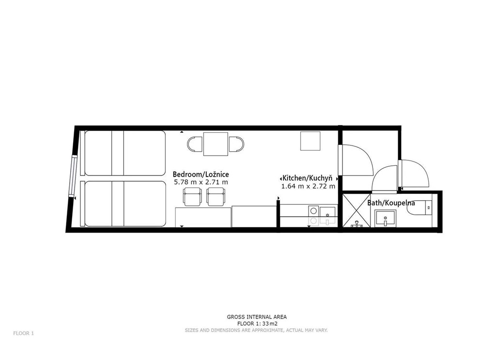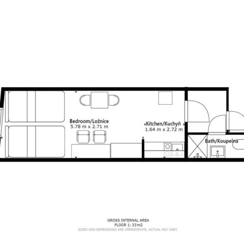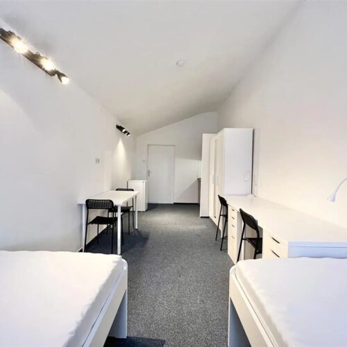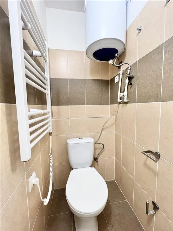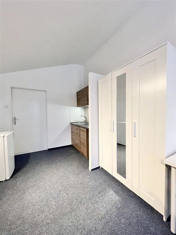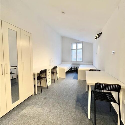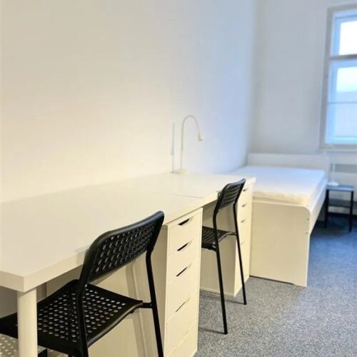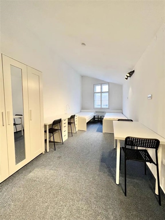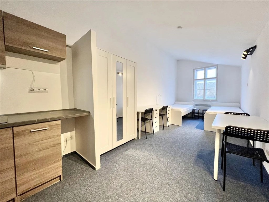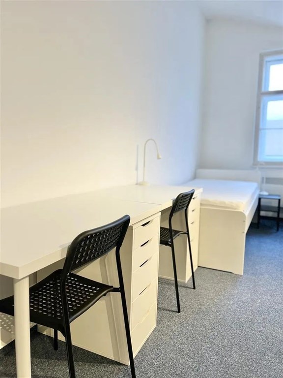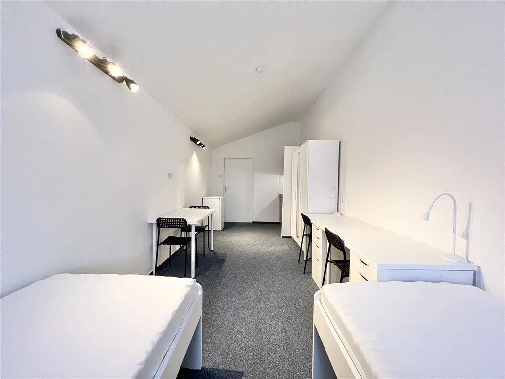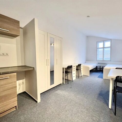 Jedná se o pronájem jednotky o dispozici 1+kk, která je nabízena kompletně vybavená. Součástí je plně zařízený kuchyňský kout včetně lednice, mikrovlnné trouby, varné konvice, sklokeramické desky, digestoře a dřezu. Jednotka je vybavena dvěma pohodlnými postelemi s nočními stolky, dvěma pracovními stoly se židlemi a prostornou skříní. Koupelna nabízí sprchový kout, záchod a umyvadlo se zrcadlem.