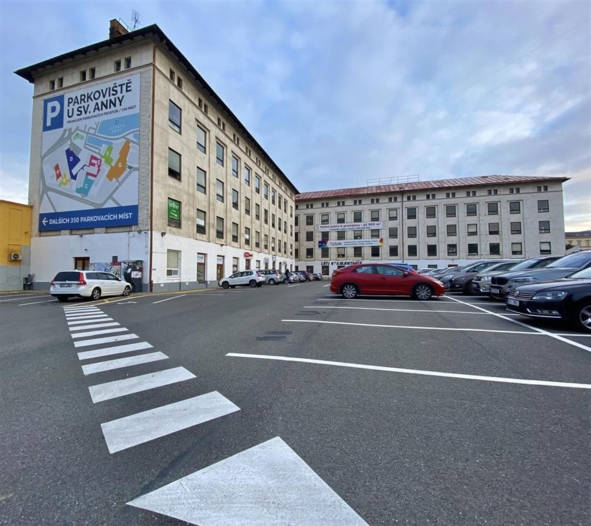Pro nájemce a jejich zákazníky je k dispozici dostatek parkovacích míst před budovou, s možností pronájmu parkovacího místa za 2 190 Kč/měsíc vč. DPH. Parkoviště je osvětlené a umožňuje příjezd i pro nákladní automobily.